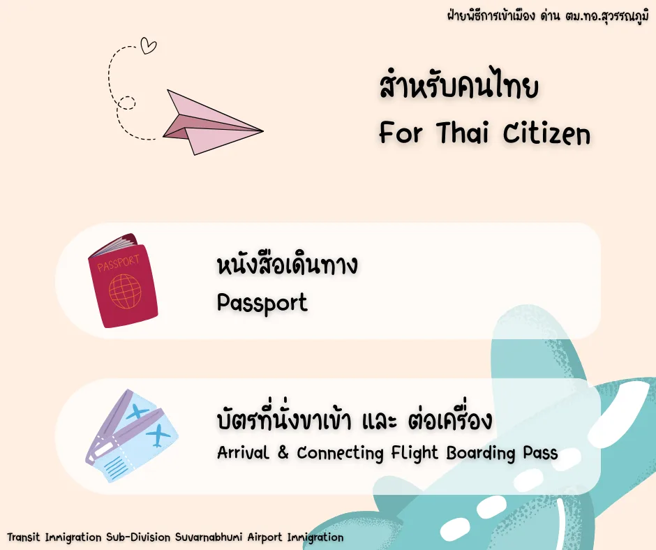 **ประชาสัมพันธ์**เอกสารสำหรับยื่นต่อเจ้าหน้าที่ ตม. ในการต่อเครื่องจากสนามบินสุวรรณภูมิไปยังสนามบินภูมิภาคBy TransitImm / 30 มีนาคม 2025