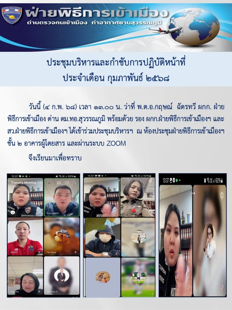 ฝ่ายพิธีการเข้าเมือง ด่าน ตม.ทอ.สุวรรณภูมิ : ประชุมบริหารและกำชับการปฏิบัติราชการ ครั้งที่ 5/2568